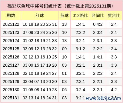 红球三区比1:3:2,质合比为3:3,012路比为3:2:1,蓝球为质数、0路号码。